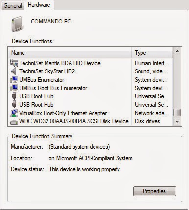 Start-Device and Printers-(pa na ikonicu kompa) potom na Hardware karticu i dobijete ovu sliku: