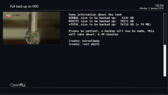 Pre svih radnji treba da vam usb stick bude formatiran u fat32 i mountovan kao media/hdd odnosno sda1 ili media/usb sda2 ili 2. Ako je kao usb treba na usb dodati 2 fajla backupstick i backupstick.txt i oni trebaju biti prazni bez sadryaja u njima.