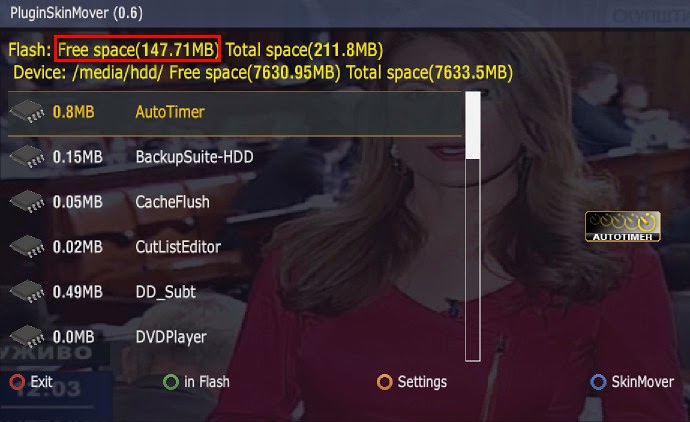 Uđete u plugins mover zatim žuto dugme settings, selektujete putanju usb-a ili hdd i klikom na plugin on se šalje na usb/hdd a samim tim gore na vrhu se vidi koliko je oslobodio flash memorije.